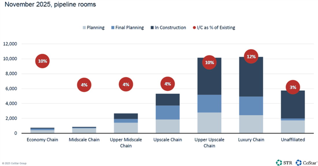 While RevPAR has begun to level off thus far in 2025, occupancy remains in the mid-70s and ADR is maintaining the historical highs achieved the prior two years, led by consistent growth within the luxury segment. However, the new supply pipeline, which is dominated by luxury and upper-upscale projects, could slow pricing power in the near term; additionally, a demand dip from United States travelers, a slow summer, and uncertainty related to tariffs raised concerns about short-term RevPAR growth.New Supply in the Caribbean