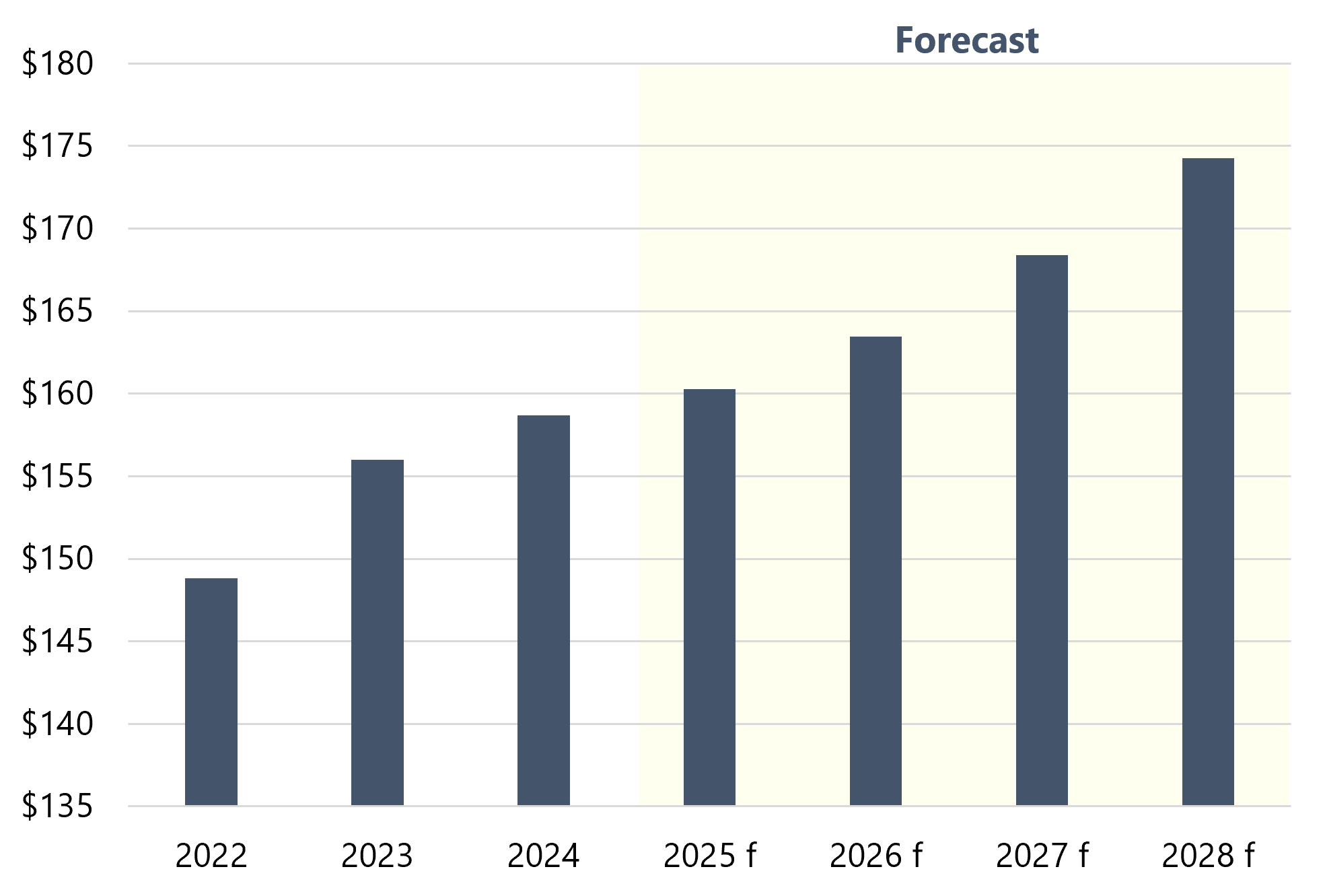 While demand has remained steady in 2025, topline performance has clearly flattened. HVS data through mid-year 2025 shows occupancy dipping in 2025 and ADR increases moderating after several years of strong post-pandemic recovery. Together, these trends indicate that revenue growth alone will no longer offset rising expenses, setting the stage for a more cost-sensitive operating environment.Occupancy Anticipated to Dip in 2025/26 Before Rebounding