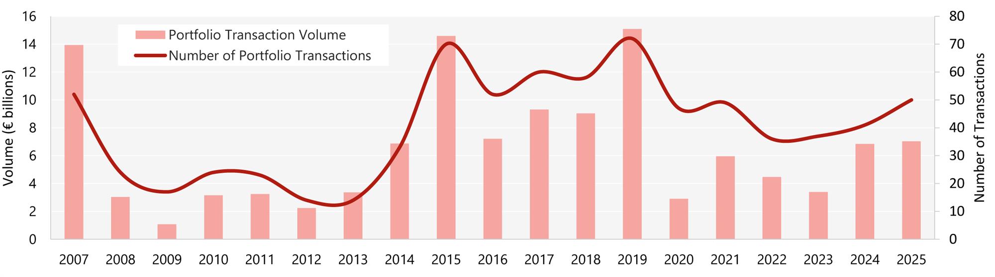 - Portfolio transaction volume totalled €7 billion in 2025, a modest 3% increase on 2024;