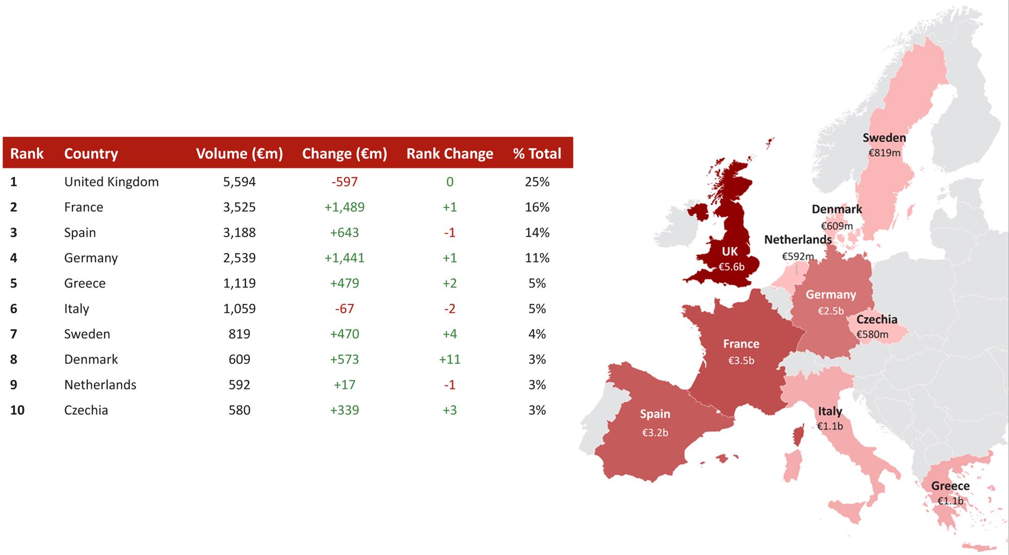 - Other countries that saw significantly increased single asset activity in 2025 were Germany (+€1.1 billion), Czechia (+€512 million) and Austria (+€222 million).